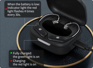 Aby zapewnić dłuższą żywotność baterii, zaprojektowaliśmy dużą komorę ładującą do KZ AZ10. Może pomieścić jednocześnie więcej rozmiarów słuchawek i zaczepów na uszy, co jest wygodniejsze w obsłudze. Dodatkowo moduł ma wbudowaną baterię 800mAh, zapewniającą do 54 godzin pracy na baterii.