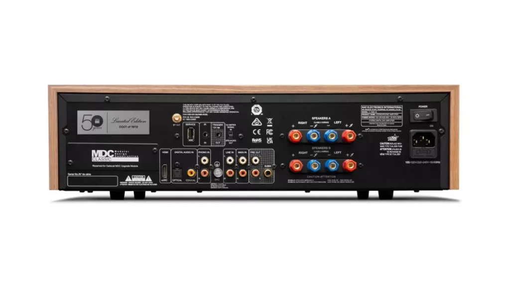 Nowe urządzenie łączy retro design z całkiem nowoczesną technologią streamingu. Całość zamknięta jest w obudowie z forniru w odcieniu walnut z – robiącymi “robotę” w całym projekcie wskaźnikami w technologii LED. Wygląd zewnętrzny NADa C 3050 LE bazuje na oryginalnym designie modelu 3030, jednak wzbogaconym o rozwiązania takie jak autosrka platforma BluOS wspierająca AirPlay 2, Bluetooth z aptX HD oraz system korekcji dźwięku Dirac Room. Tylny panel dodatkowo wyposażony jest w złącze HDMI z eARC, wejścia liniowe oraz phono i wzmacniacz słuchawkowy.