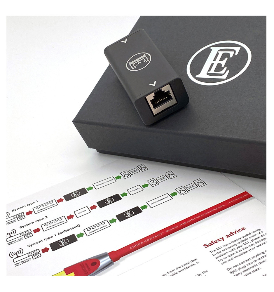 Niezwykle wydajny izolator szumów sieciowych, który zdecydowanie podniesie jakość w systemie audio-wideo używanym do przesyłania strumieniowego. Zastosowany w urządzeniu filtr wydatnie zmniejsza poziom zanieczyszczeń sygnału przesyłanego pomiędzy przewodami Ethernet, co skutkuje poprawą brzmienia odtwarzanego dźwięku. Dzięki niedużym wymiarom filtra EE1 można go spokojnie umieścić pomiędzy dwoma kablami LAN i praktycznie zapomnieć o tym, że on się tam znajduje.