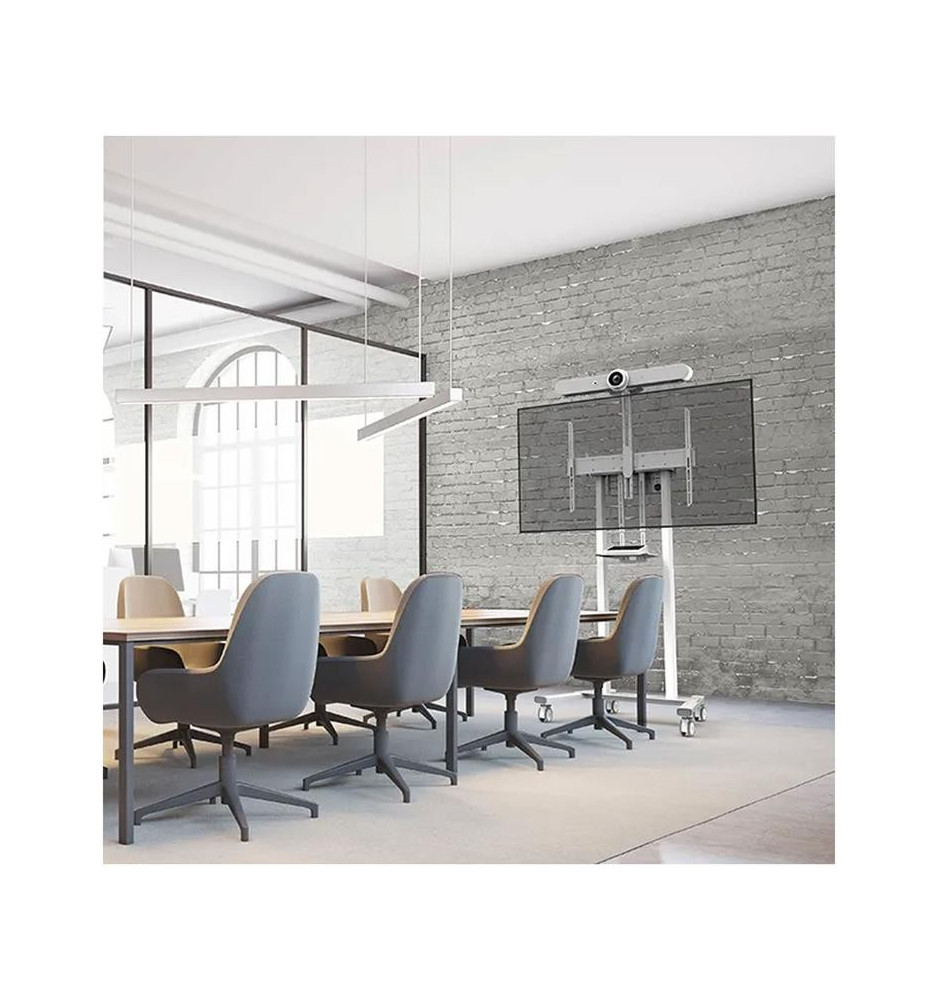 Zestaw umożliwiający zamontowanie oddzielnej półki na kamerę, półki na urządzenia multimedialne oraz videobar. W komplecie umieszczono także adapter do Logitech Rally Bar i Rally Bar Mini. Neomounts AFL-875 jest kompatybilny ze stojakami FL55-875 oraz WL55-875.