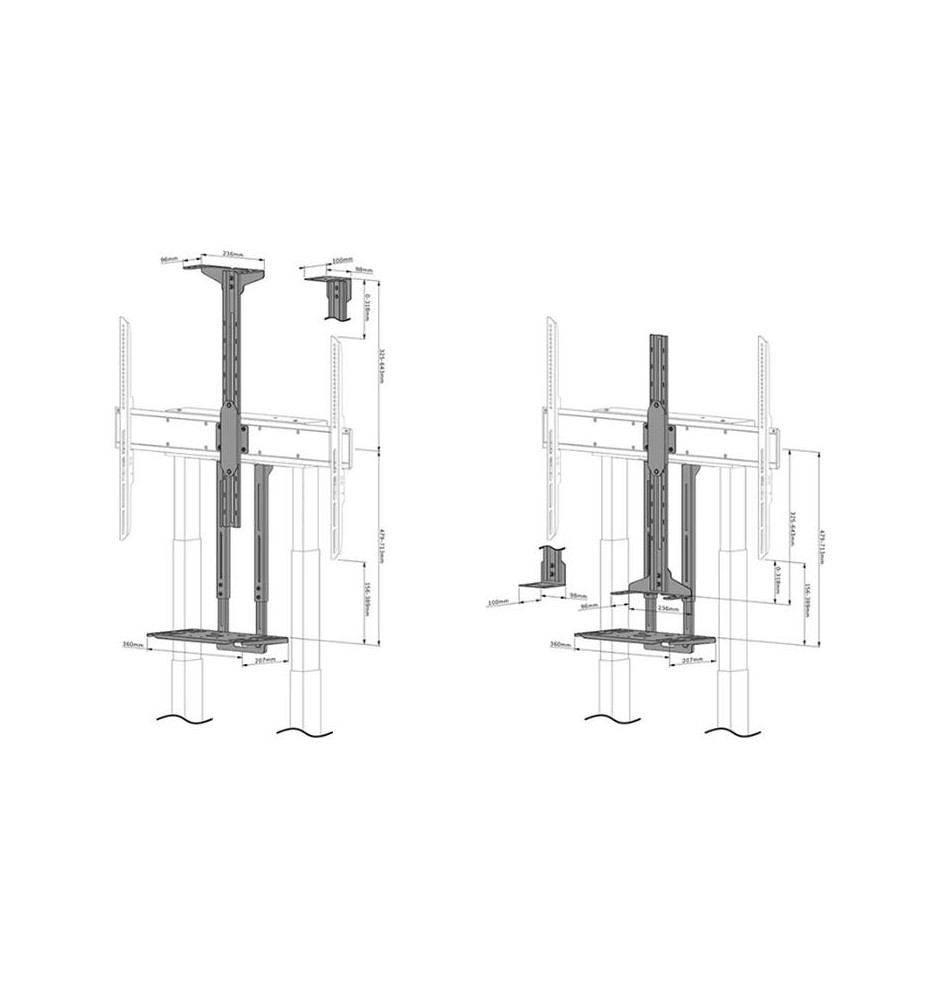 Uniwersalną półkę na kamerę można zainstalować zarówno nad, jak i pod ekranem, a także zarówno z przodu, jak i z tyłu. Wysokość na jakiej się znajduje może zostać dopasowana do konkretnego modelu ekranu zainstalowanego aktualnie na uchwycie. Montaż videobaru i półki również można dostosować do bieżących potrzeb i własnych preferencji.