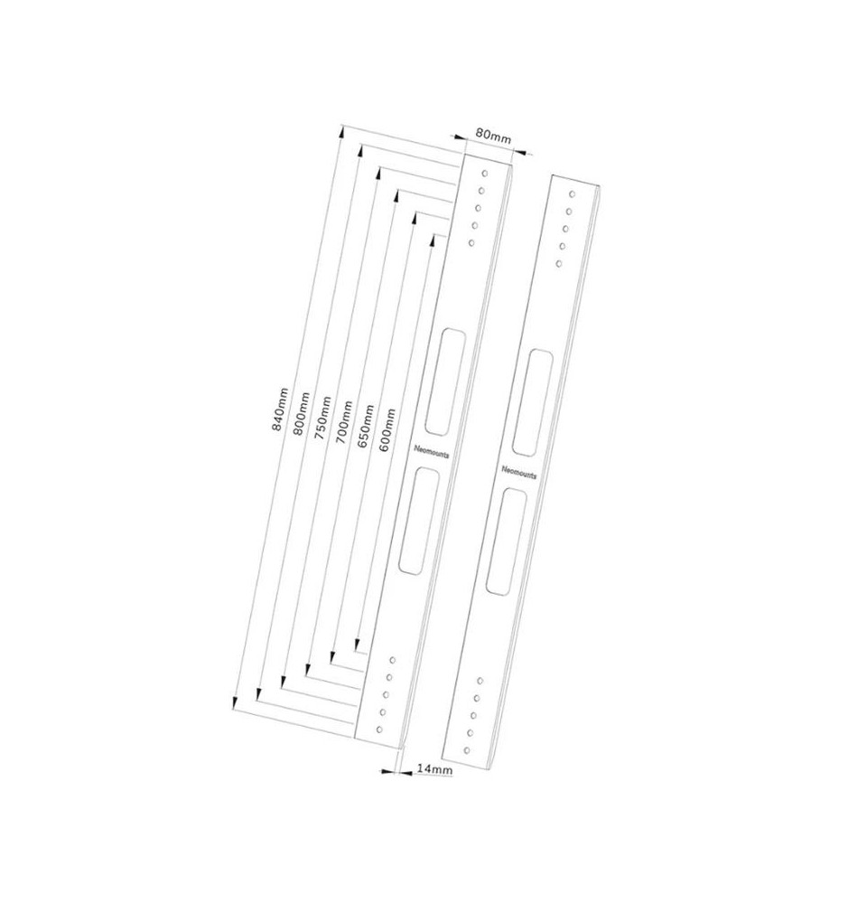 Uniwersalny zestaw rozszerzający do uchwytów ściennych marki Neomounts by Newstar. Pozwala na rozszerzenie otworów montażowych w standardzie VESA z 400 mm do maksymalnie 800 mm.