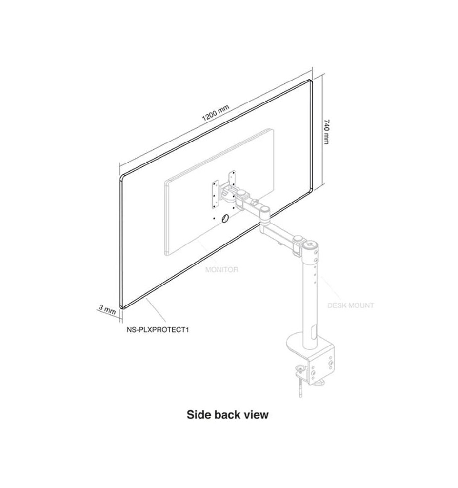 Osłona ochronna NS-PLXPROTECT1 ma 120 cm szerokości oraz 74 cm wysokości i idealnie nadaje się do płaskich ekranów monitorów o przekątnej do 32 cali. Wykonano ją w całości z przezroczystego akrylu i ma zaokrąglone rogi.