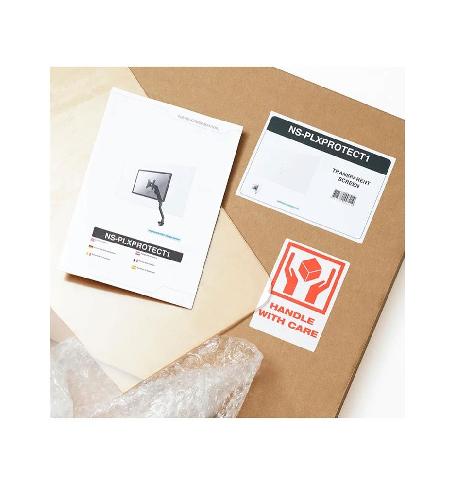 Osłona ochronna NS-PLXPROTECT1 ma 120 cm szerokości oraz 74 cm wysokości i idealnie nadaje się do płaskich ekranów monitorów o przekątnej do 32 cali. Wykonano ją w całości z przezroczystego akrylu i ma zaokrąglone rogi. Produkt jest łatwy w instalacji i czyszczeniu oraz w 100% nadaje się do recyklingu.