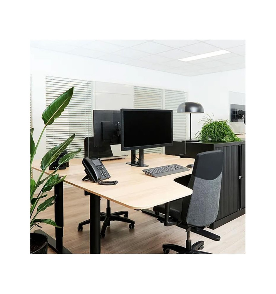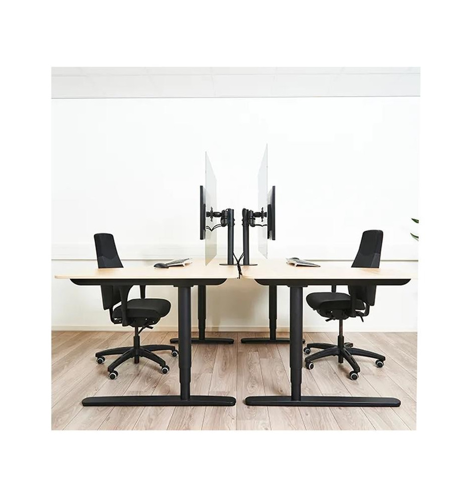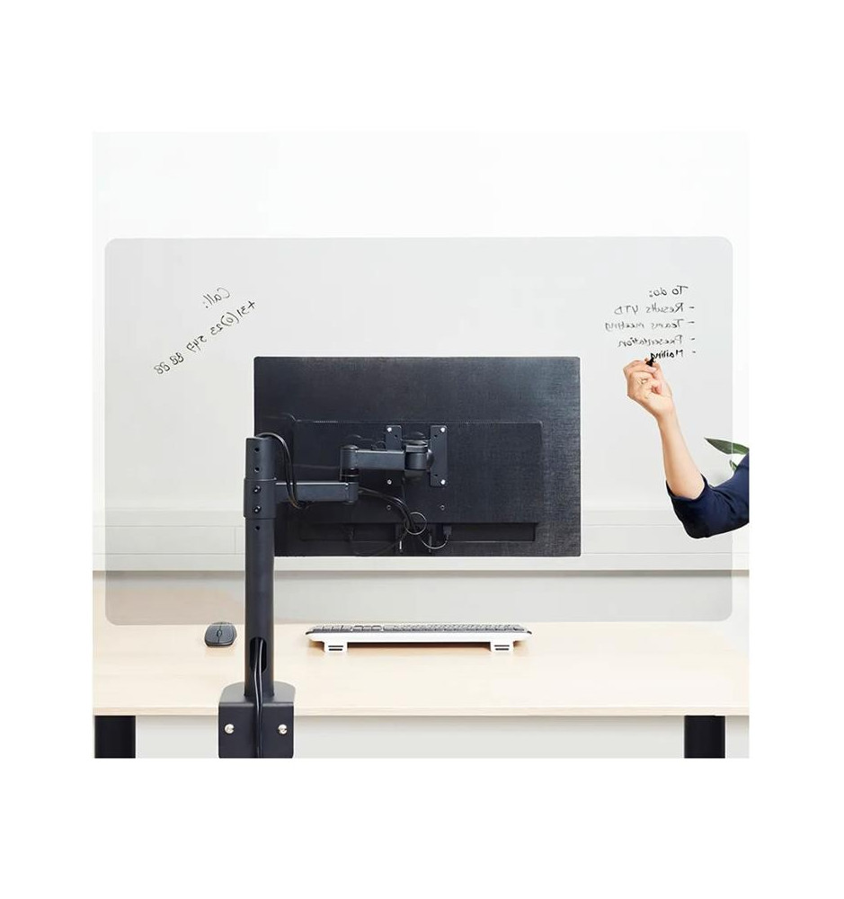 Oferowana osłona jest dobrą alternatywą dla tych montowanych na stałe, ponieważ nie zajmuje dodatkowego miejsca na stanowisku pracy. Ponadto ekran może służyć jako tablica do notatek z listami rzeczy do zrobienia. Jest ona łatwa do zainstalowania na używanym już uchwycie biurkowym i bezproblemowo przesuwa się razem z nim czy wraz z biurkiem wyposażonym w regulację wysokości.