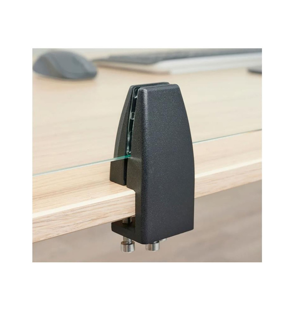Przezroczysta osłona ochronna ze szkła hartowanego poddanego dodatkowo laminacji. Jest to sprawdzona ochrona w miejscu pracy pozwalająca oddzielić poszczególne stanowiska pracy bez równoczesnego ograniczania możliwości swobodnej komunikacji między pracownikami. Wraz z nią otrzymasz zaciski montażowe umożliwiające szybką i bezpieczną instalację na biurkach.