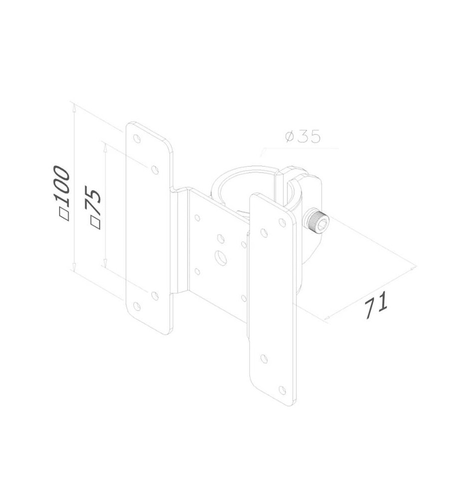 Uchwyt / adapter umożliwiający zamontowanie mini komputera na słupku od uchwytu do monitora. Do instalacji wykorzystuje otwory montażowe w standardzie VESA 75x75 i 100x100.