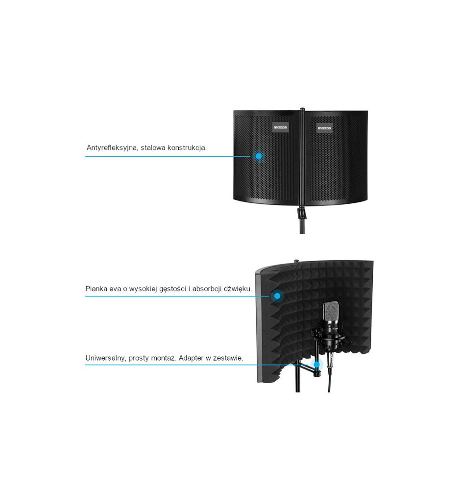 Mozos MSHLIED cechuje niewielka waga oraz składana konstrukcja, zwiększająca mobilność ekranu studyjnego i umożliwiająca stworzenie profesjonalnego studia nagraniowego w dowolnym pomieszczeniu.