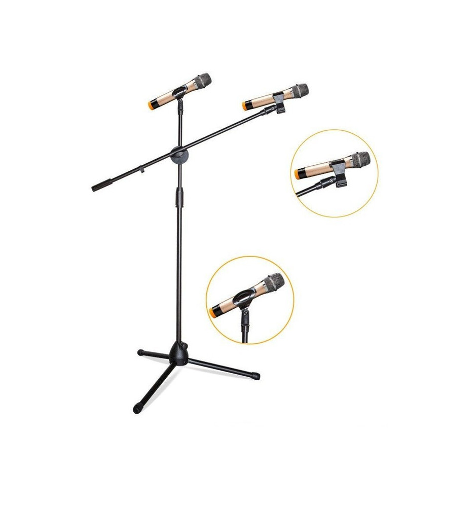 W zestawie wraz ze stojakiem, otrzymasz dwa gratisowe uchwyty. Jeden zatrzaskowy można wykorzystać jako mocowanie do telefonu czy zapisów tekstu, natomiast drugi to uchwyt wciskowy z zakresem 28-40mm. Uchwyty oraz bezpośredni gwint statywu umożliwią zamontowanie większości mikrofonów dostępnych na rynku.