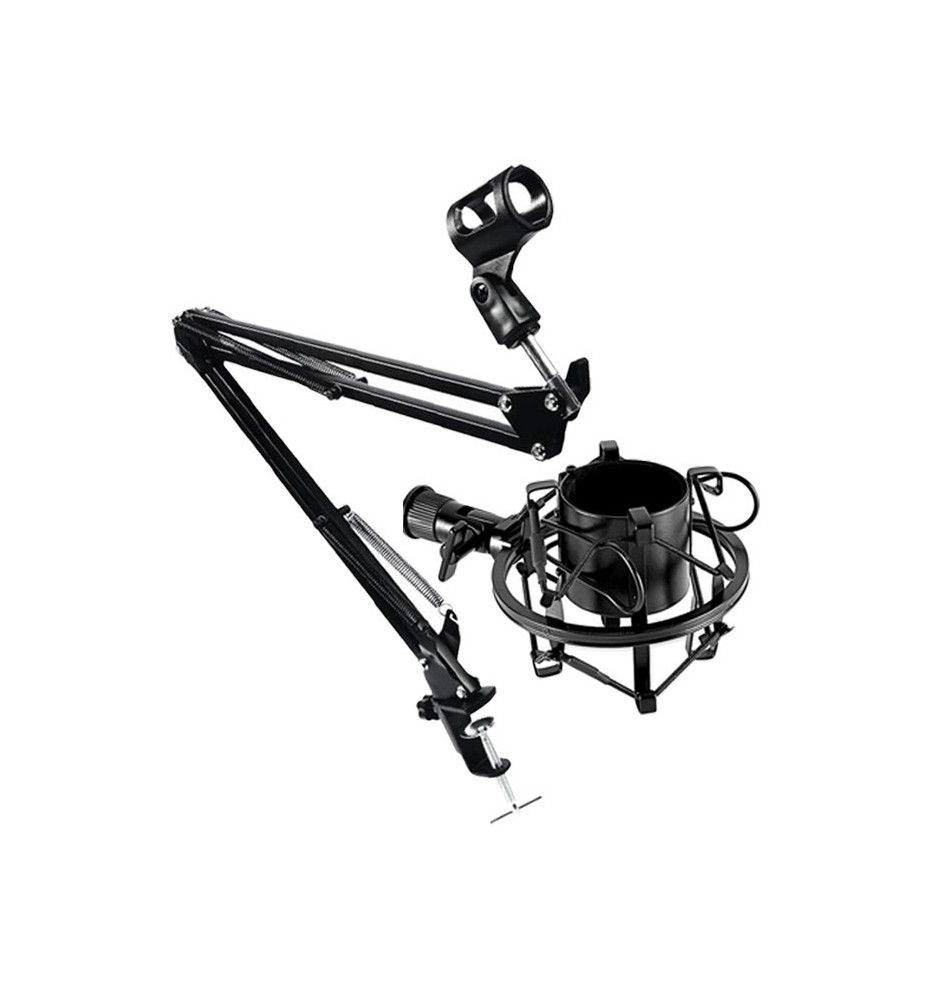 Uchwyt/statyw mikrofonowy + odporny na wstrząsy kosz antywibracyjny 43-47mm do mikrofonu - zestaw przeznaczony do profesjonalnego studia nagraniowego jak i do domowego wykorzystania.