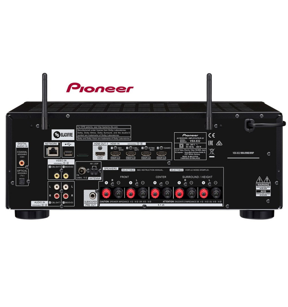 Pioneer VSX-832 to zaawansowany amplituner kina domowego z dekoderem Dolby Atmos i DTS:X, skalowaniem obrazu do rozdzielczości 4K Ultra HD oraz obsługą kolorów HDR10 i Dolby Vision.