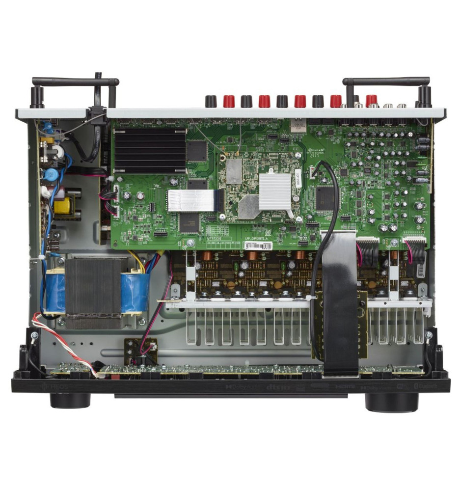 Oferujący 75W mocy wyjściowej na kanał przy 8 Ohm, 5.2-kanałowy amplituner AV z radiem FM, obsługujący Dolby TrueHD, Dolby Surround, DTS-HD Master Audio oraz DTS Neo:6.