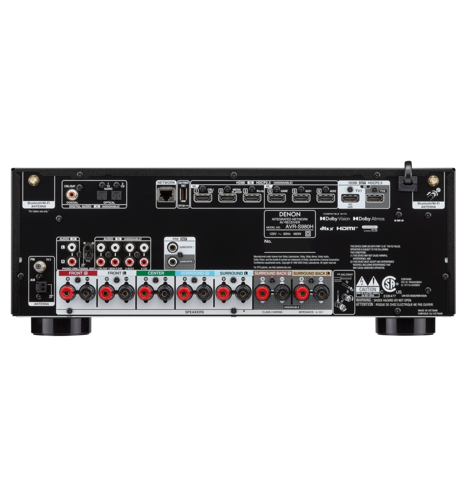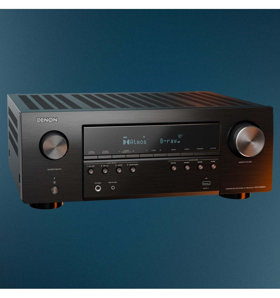 Model AVR-S980H zapewnia moc do 125 W na kanał, obsługuje konfiguracje 7.2 lub 5.1.2 Dolby Atmos, a dzięki wsparciu dla Dolby Atmos oraz DTS:X pozwala cieszyć się immersyjnym dźwiękiem 3D. Wyposażony w 6 wejść HDMI (w tym 3 x 8K) oraz wyjście HDMI eARC, gwarantuje pełną kompatybilność z nowoczesnymi telewizorami i konsolami. Urządzenie oferuje także HEOS Built-in, Wi-Fi, Bluetooth, AirPlay 2 oraz dostęp do najpopularniejszych serwisów streamingowych.