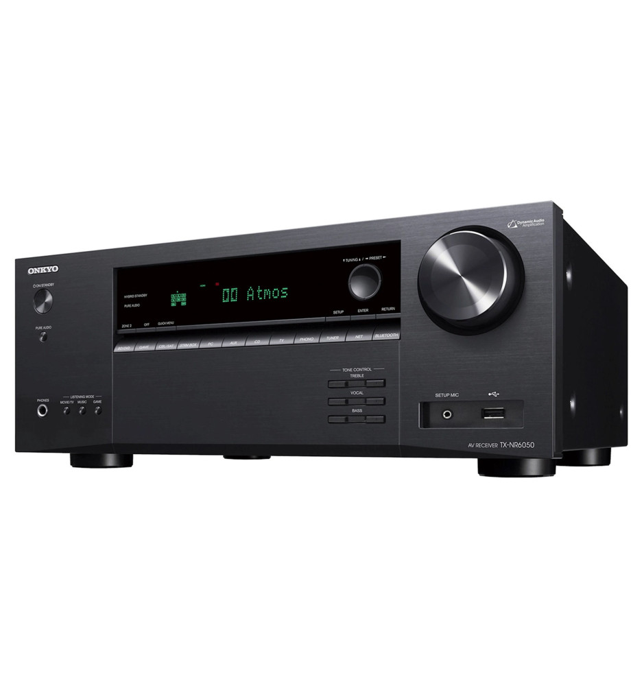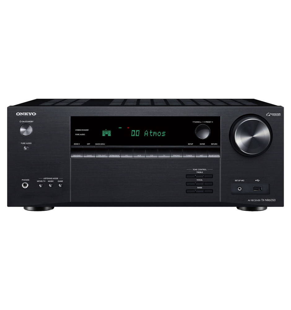 Amplituner Onkyo TX‑NR6050 oferuje moc 90 W na kanał, umożliwiając konfigurację systemu 7.2 lub 5.2.2 z Dolby Atmos i DTS:X, a także obsługą Dolby Atmos Height Virtualizer – dla pełnej głębi przestrzennego dźwięku nawet bez głośników sufitowych.