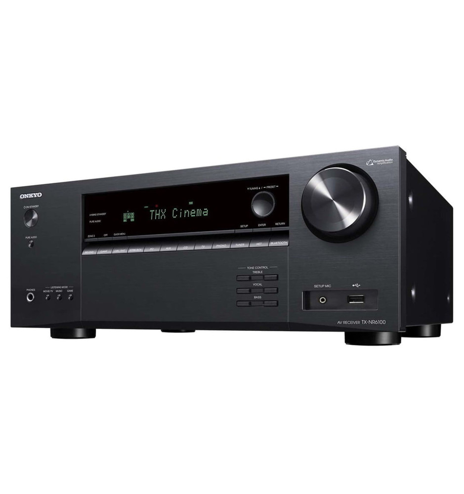 Amplituner Onkyo TX-NR6100 został nagrodzony certyfikatem THX Select, będącym gwarancją referencyjnej głośności i jakości dźwięku jak w sali kinowej przy odległości około 3.5-metra od ekranu. Złącza HDMI w standardzie 2.1 umożliwiają przesyłanie wideo 8K/60p i obsługę formatów HDR10, HLG, HDR10+ i Dolby Vision z optymalizacją jasności, kontrastu i kolorów.