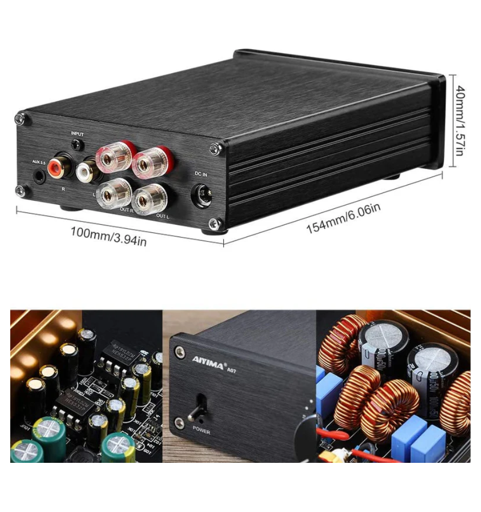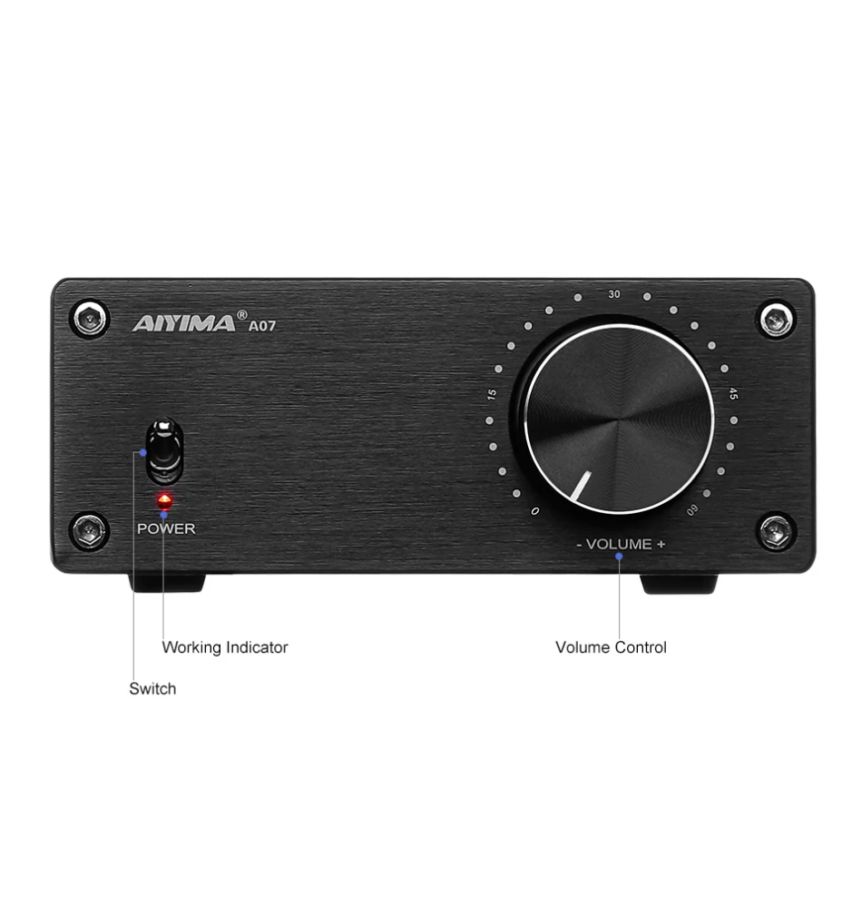 AIYIMA A07 to wydajny wzmacniacz mocy klasy D, który łączy kompaktowe wymiary z potężnym brzmieniem. Dzięki nowoczesnemu układowi Texas Instruments TPA3255 oferuje czyste i dynamiczne brzmienie, niskie zniekształcenia oraz znakomitą efektywność energetyczną. To idealne rozwiązanie dla osób szukających mocnego i wiernego dźwięku w domowym systemie audio.