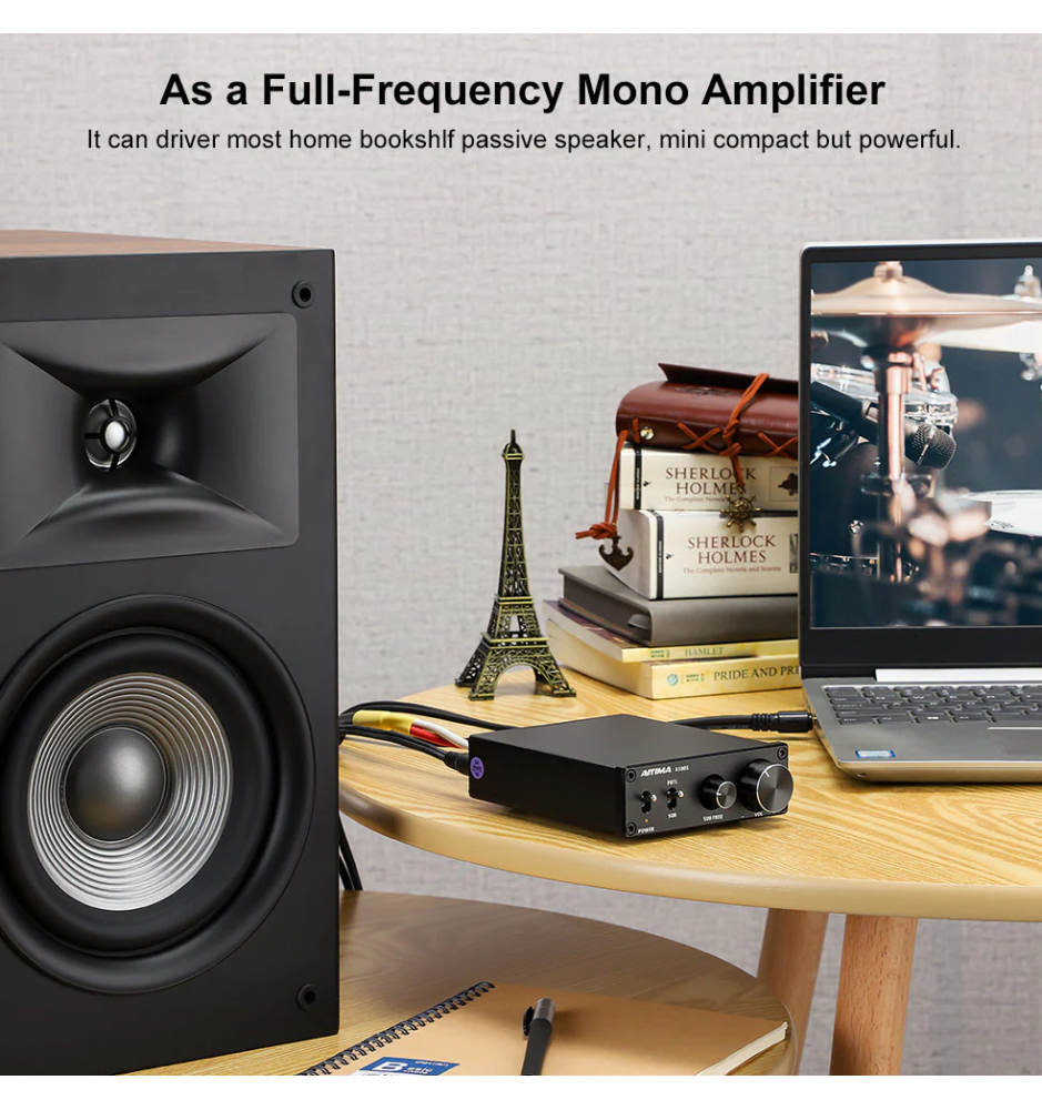 AIYIMA A1001 to wydajny, kompaktowy wzmacniacz monofoniczny stworzony z myślą o miłośnikach głębokiego basu i czystego dźwięku. Oferuje moc do 100W, szerokie pasmo przenoszenia 20Hz–20kHz oraz precyzyjną regulację częstotliwości odcięcia basu. Idealny do zastosowania w zestawach audio, kinie domowym czy projektach DIY.