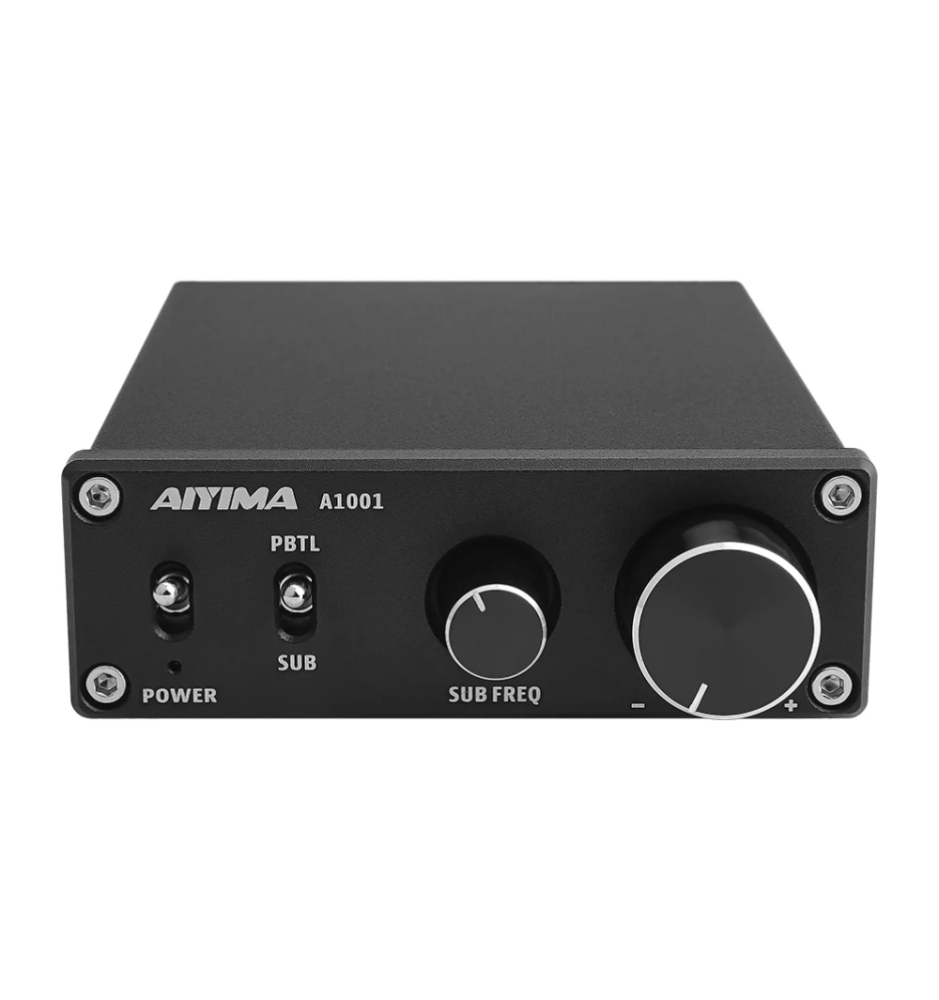 AIYIMA A1001 to kompaktowy wzmacniacz subwoofera 100W z regulacją basu 40–300Hz, niskimi zniekształceniami 0.03% i wysokim SNR ≥106dB dla czystego, dynamicznego dźwięku