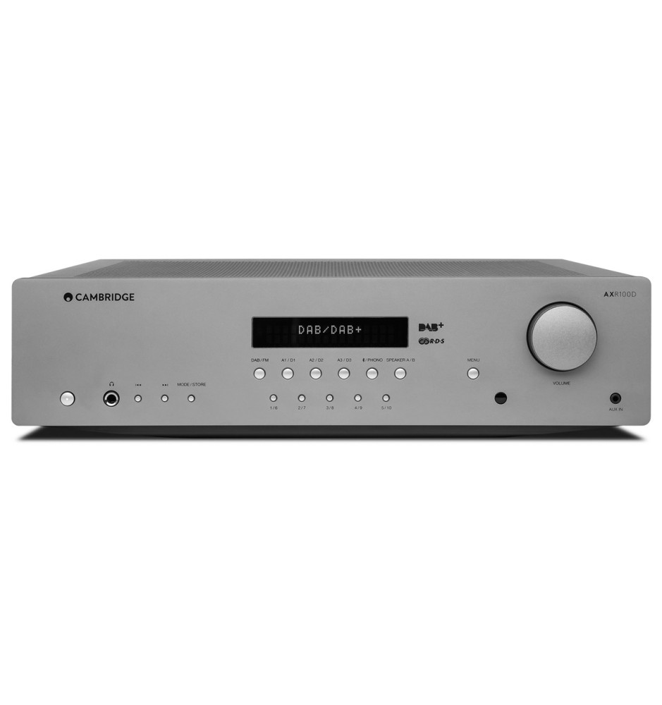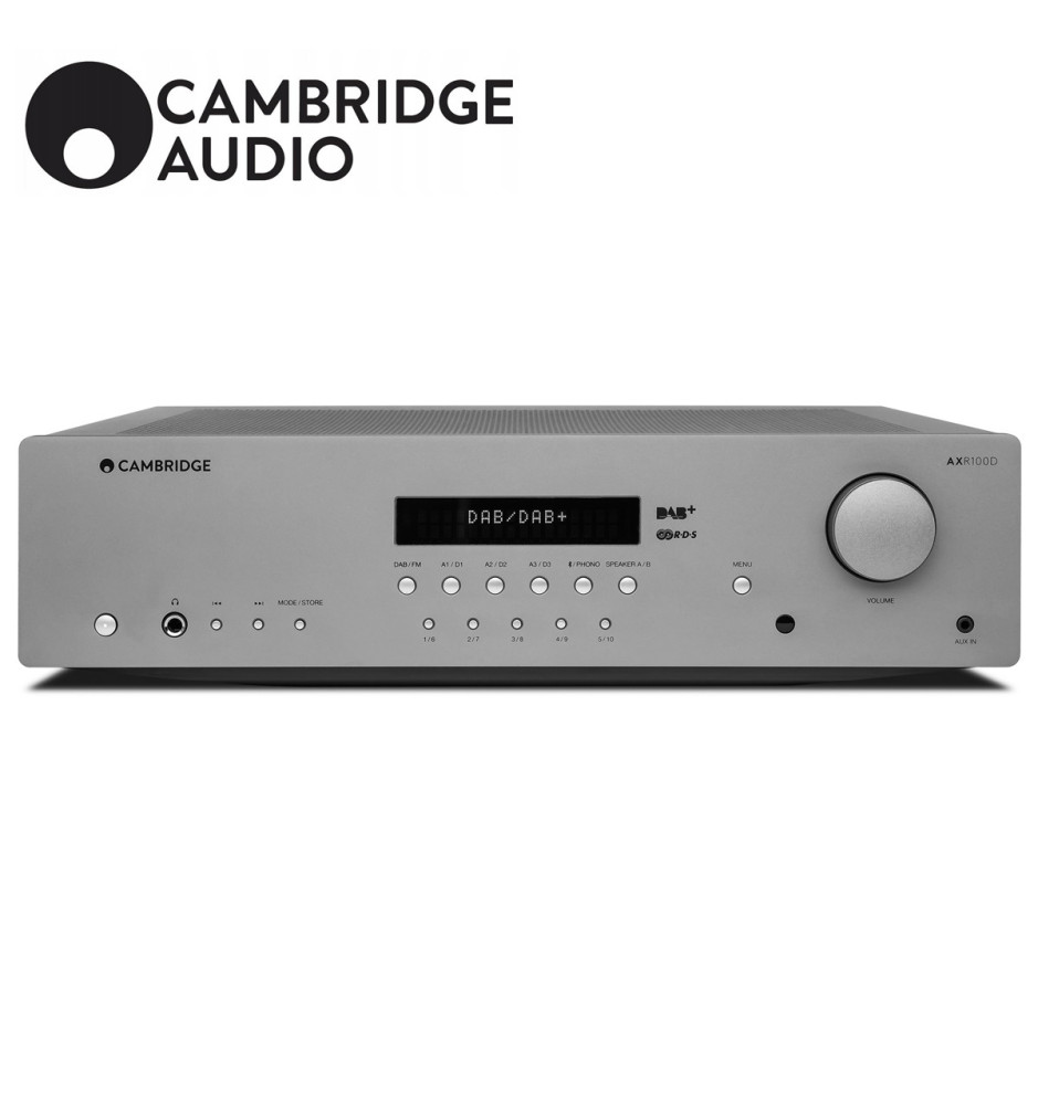Cambridge Audio AXR100D to wysokiej jakości amplituner stereofoniczny z Bluetooth 5.0 i radiem posiadający osobne wyjście na subwoofer i dwa zestawy wyjść głośnikowych. Wyposażony jest również w wejścia analogowe i cyfrowe, przedwzmacniacz gramofonowy MM, odbiornik DAB+/FM z RDS oraz wejście AUX 3,5 mm. Dzięki wbudowanemu odbiornikowi Bluetooth umożliwia przesyłanie strumieniowe muzyki ze smartfona, tabletu lub komputera. Można do niego wysłać sygnał cyfrowy ze streamerów, konsol gier, odtwarzaczy DVD i Blu-ray.