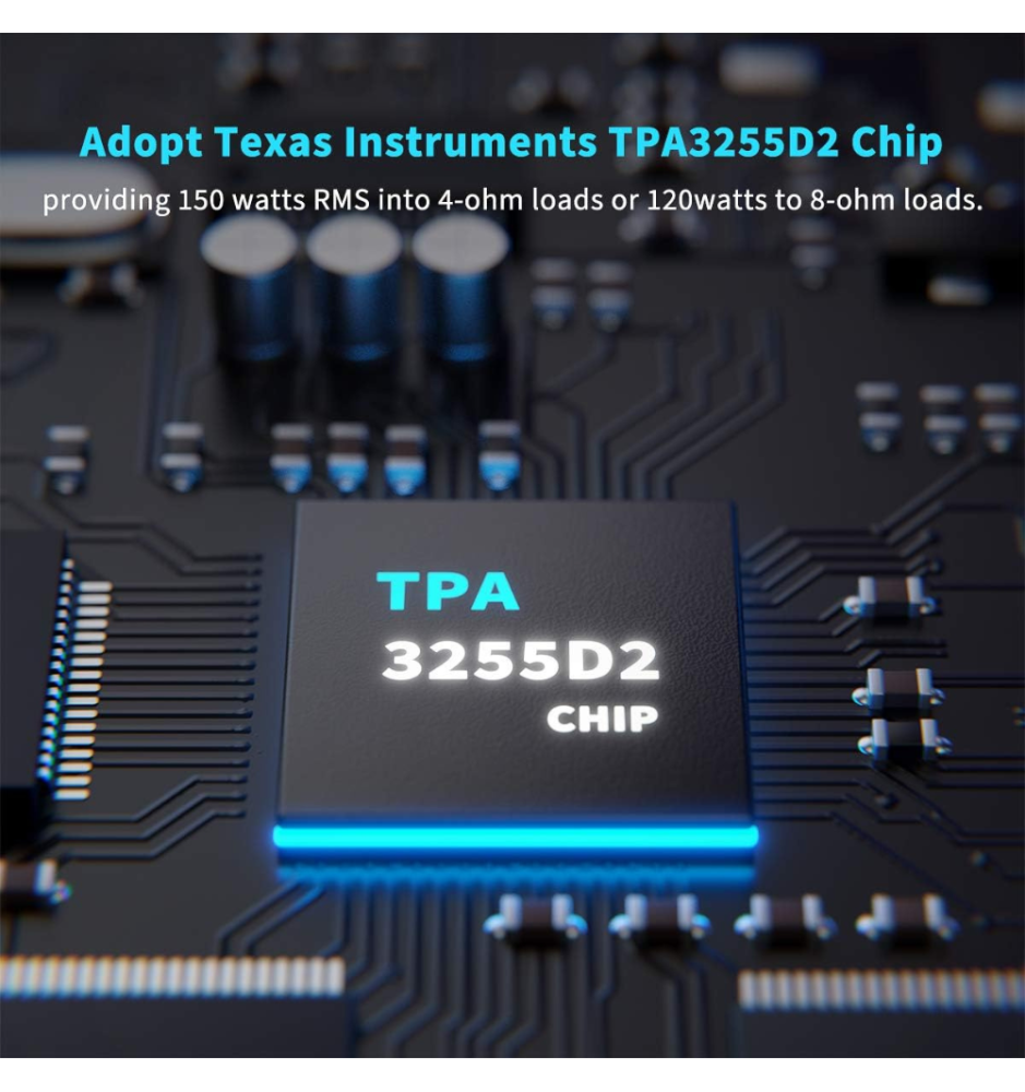 Fosi Audio M03 wykorzystuje chip TPA3255D2, który zapewnia wysoką efektywność i moc wyjściową do 200W. Dostarcza 150 W RMS przy obciążeniu 4Ω lub 120 W przy 8Ω, co czyni go idealnym wzmacniaczem dla kolumn półkowych i subwooferów.