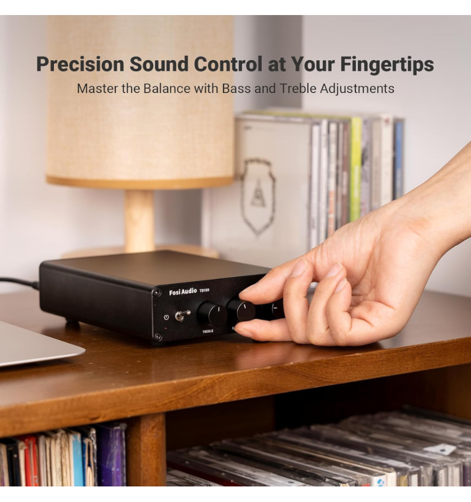 Fosi Audio TB10D to kompaktowy wzmacniacz stereo 2×300 W z układem TPA3255, oferujący czysty dźwięk, szeroką kompatybilność i regulację barwy.