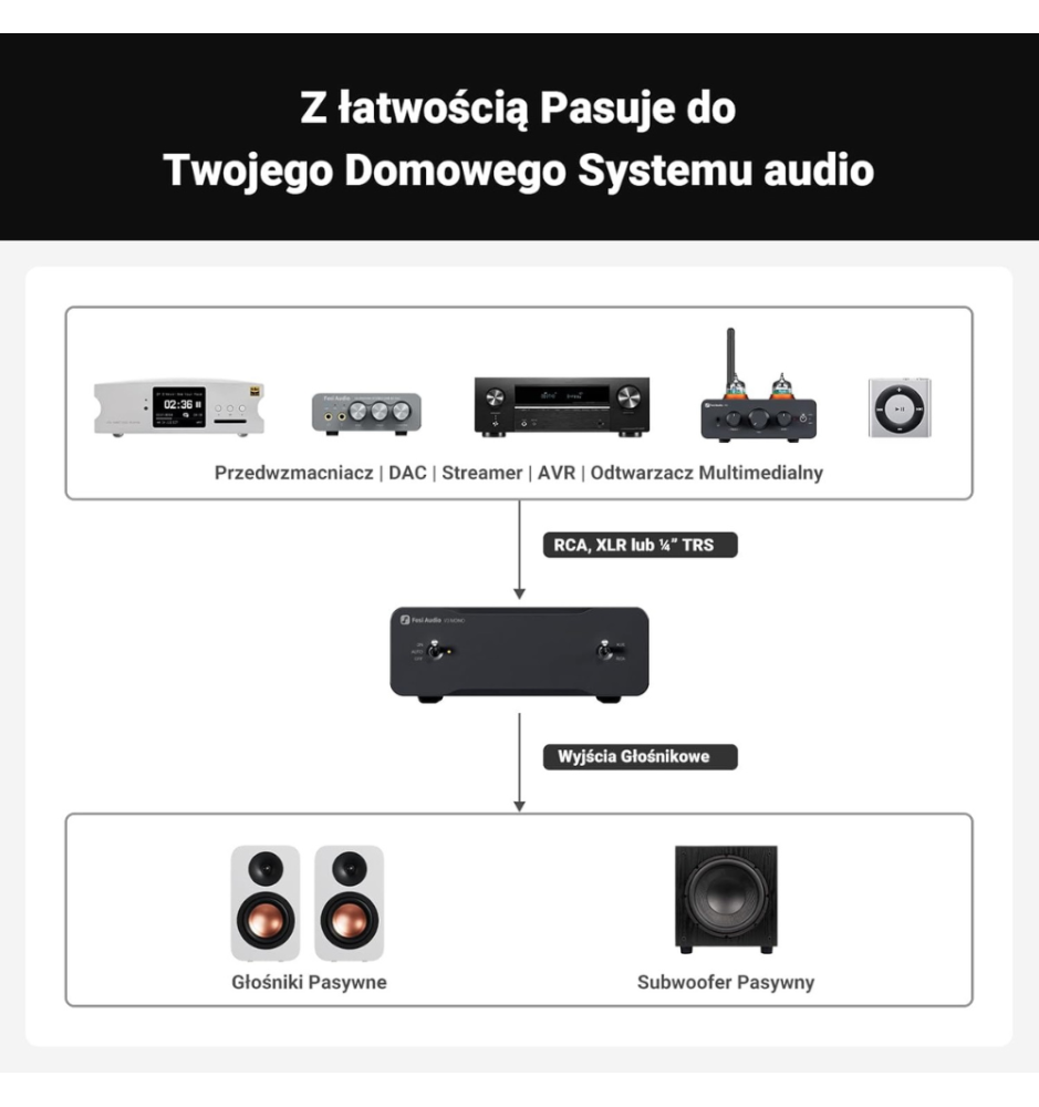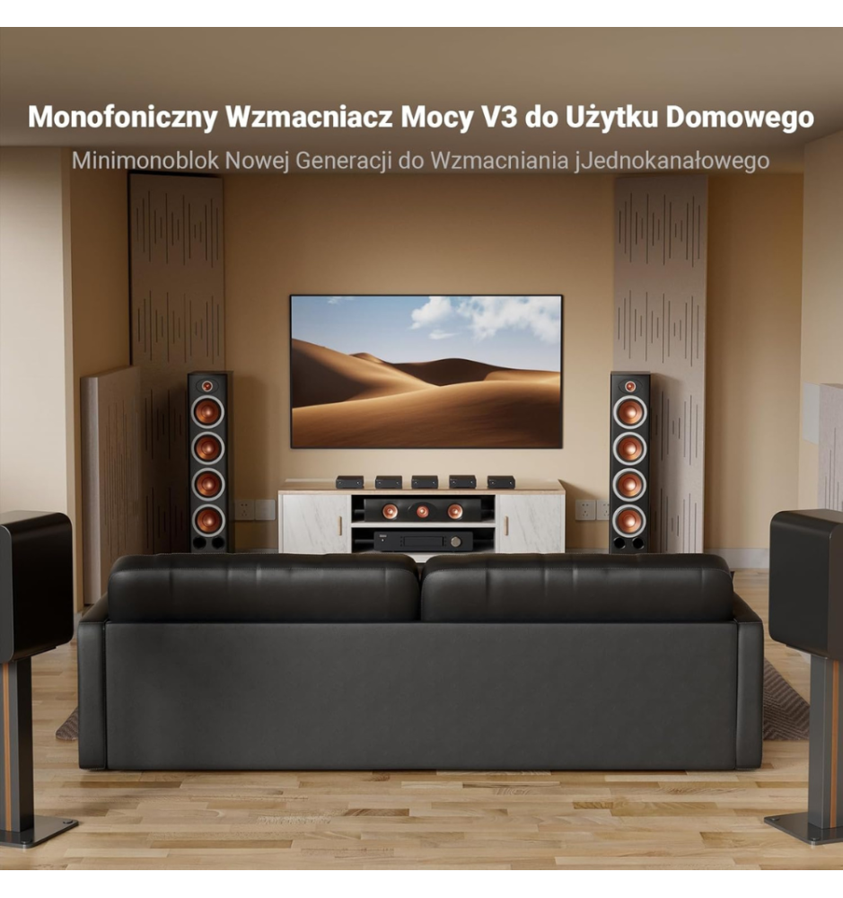 Jeżeli szukasz kompaktowego, ale potężnego monobloku, który łączy zaawansowaną technologię (PFFB), wysoką jakość komponentów (TPA3255, Nichicon/ELNA/WIMA, Sumida) oraz realne osiągi (do 240W @4Ω, THD <0.006%, SINAD 101dB), V3 Mono to doskonały wybór. Sprawdzi się zarówno w systemie audiofilskim, jak i w rozbudowanym zestawie kina domowego — wybierz moc, precyzję i elastyczność w jednym urządzeniu.