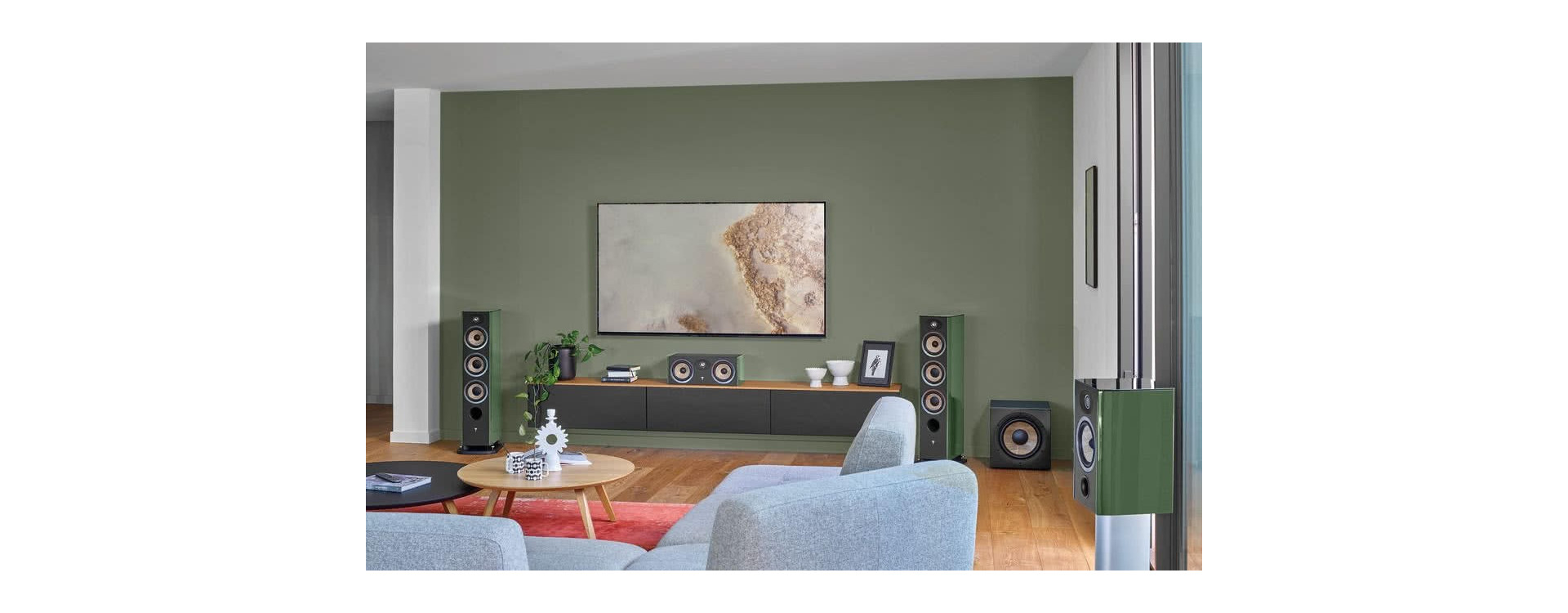 Kolumny dostępne będą w stylowych wykończeniach kolorystycznych: czerni na wysoki połysk Black High Gloss, orzechu Prime Walnut oraz nowości: zielonego połysku Moss Green High Gloss.