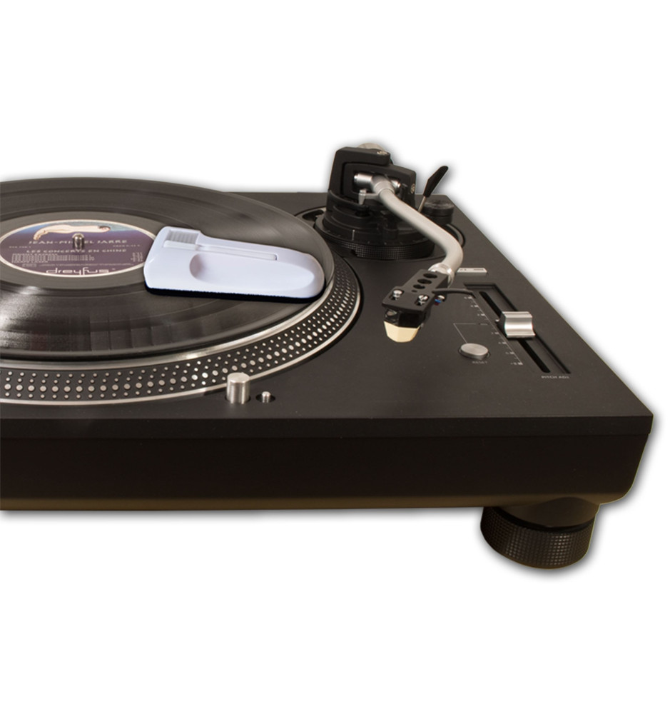 Profesjonalna, antystatyczna szczotka z miękką, welurową wyściółką przeznaczona do czyszczenia płyt winylowych. W zestawie znajduje się dodatkowa nylonowa szczoteczka do czyszczenia igły gramofonowej oraz podstawka ochronna.