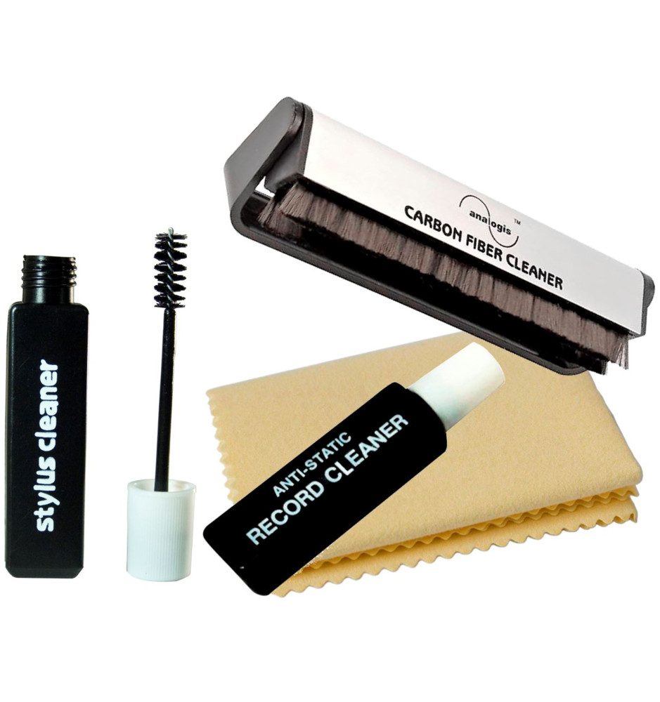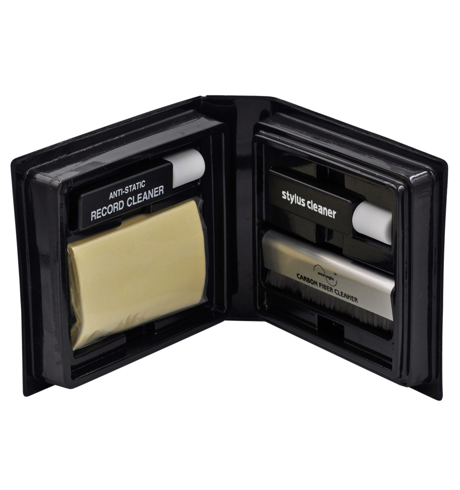 Zestaw do pielęgnacji Analogis, składa się z wygodnej szczoteczki do płyt z karbonowymi włóknami, antystatycznej ściereczki z mikrofibry, 20ml płynu do czyszczenia igieł ze szczoteczką, oraz 20ml płynu do czyszczenia płyt. Zestaw Analogis ma wszystko czego potrzebujesz, aby cieszyć się nieskazitelnym dźwiękiem z czarnych płyt.