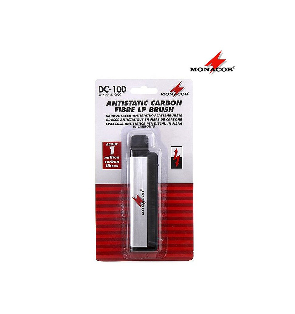 Monacor DC-100 składa się z ponad miliona włókien węglowych usuwających z powierzchni płyty nagromadzone ładunki elektrostatyczne oraz kurz, przedłużając tym samym żywotność igieł gramofonowych.
