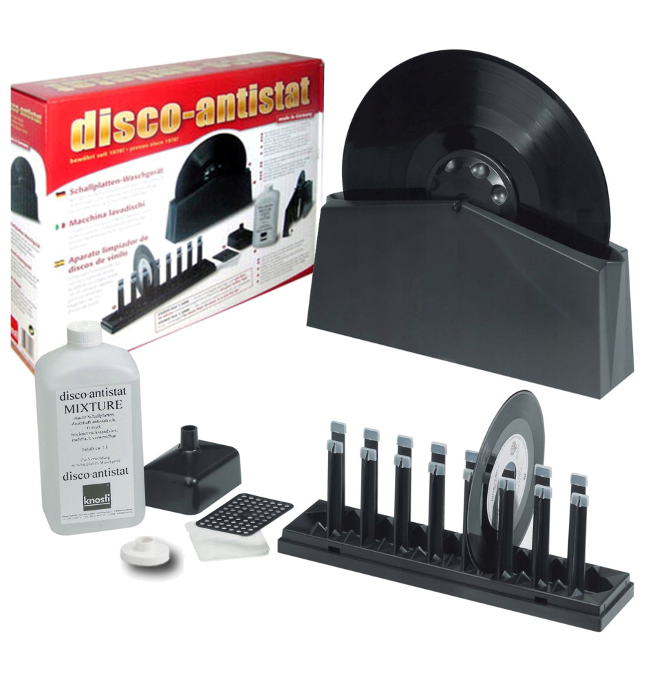 Profesjonalny zestaw do mycia, pielęgnacji i konserwacji płyt winylowych. W pełni samowystarczalny posiada wszystkie niezbędne elementy oraz płyn antystatyczny. Dzięki specjalnie zaprojektowanym elementom będziesz w stanie oczyścić swoje ulubione winyle z brudu, kurzu, odcisków palców oraz zniwelować ładunki antystatyczne.