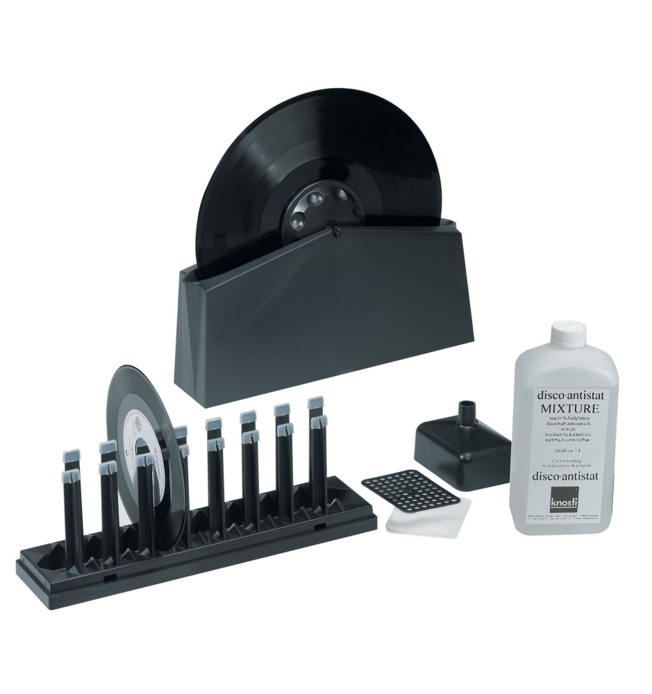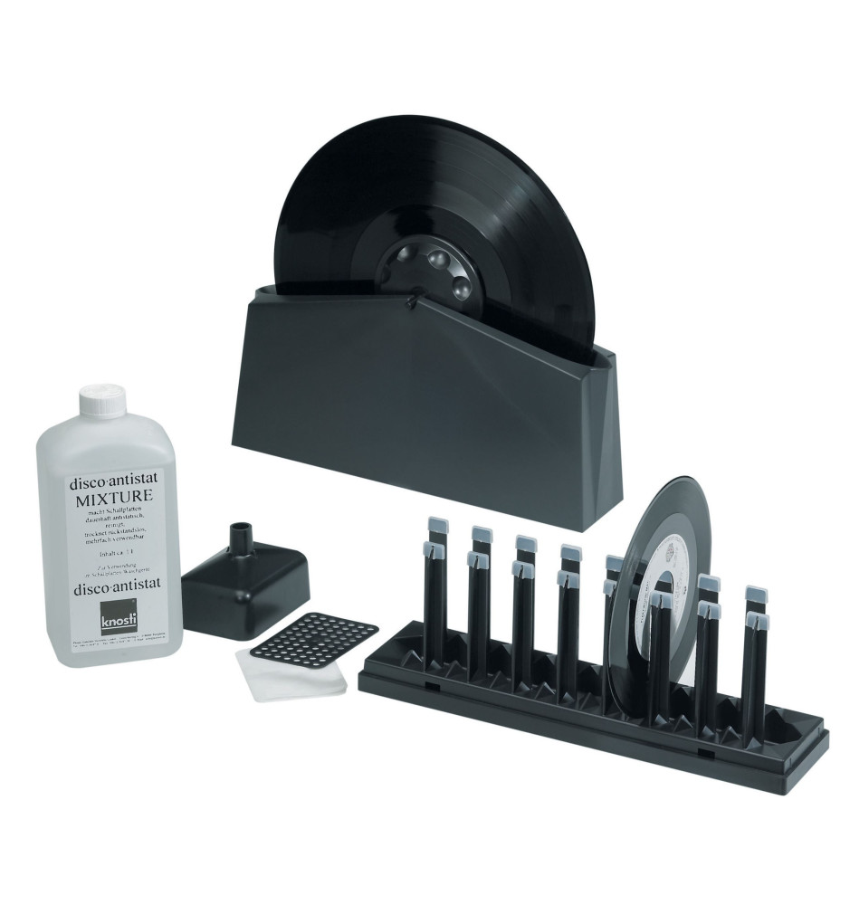 Zestaw czyszczący marki Knosti to niezbędne narzędzie dla każdego wielbiciela płyt gramofonowych. Pozwala w profesjonalny sposób oczyścić swoje ulubione "krążki" oraz pozbyć się zbędnych ładunków statycznych dzięki czemu jakość dźwięku ulegnie znacznej poprawie. Ponadto odpowiednia pielęgnacja płyt jest niezbędna gdyż chroni i wydłuża żywotność igły gramofonowej.