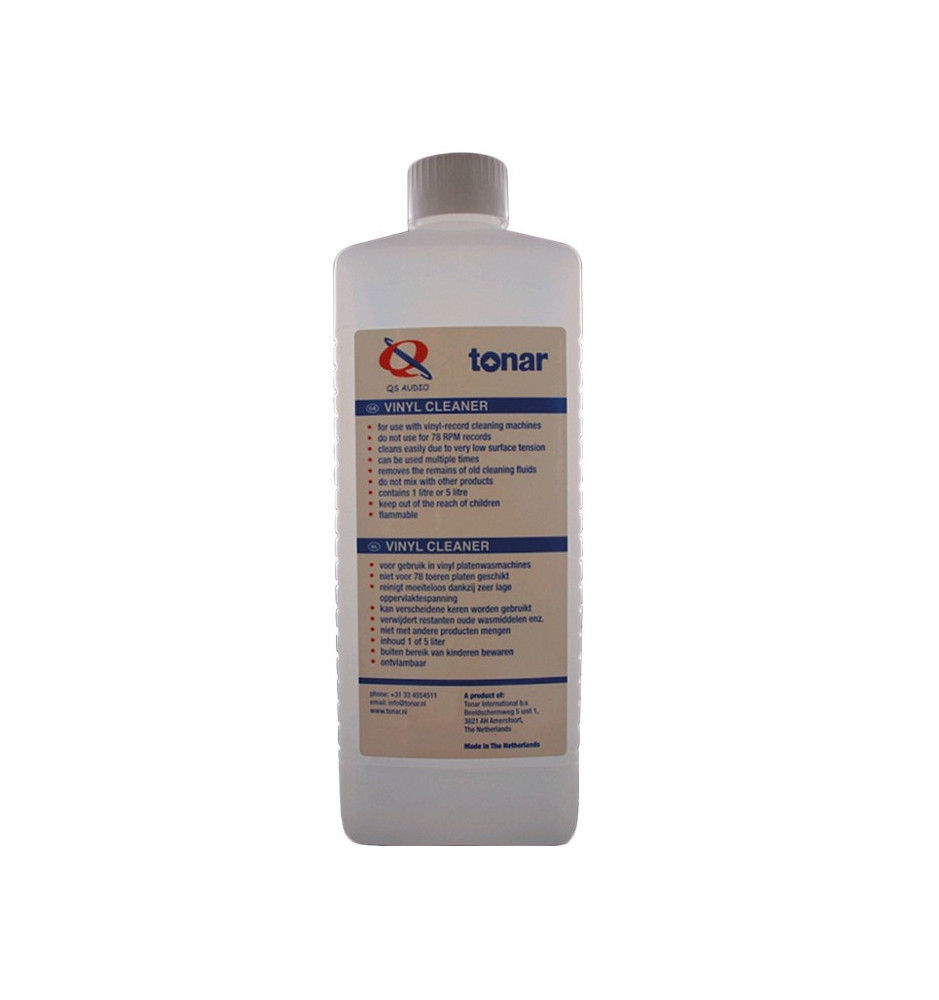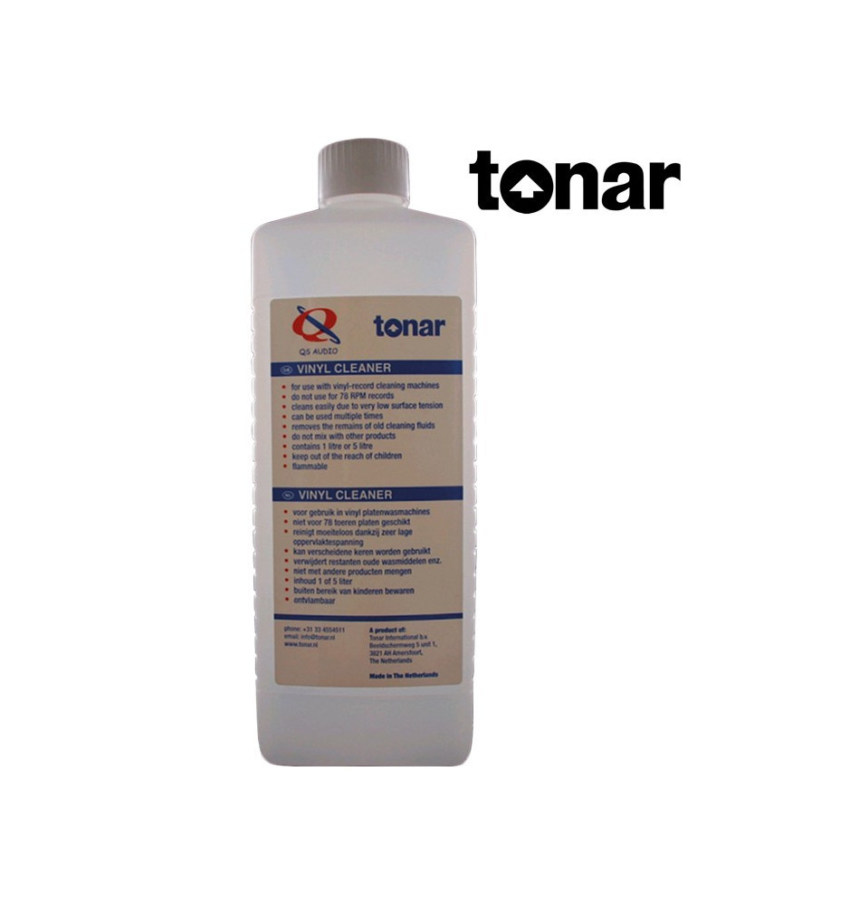 Płyn do czyszczenia Tonar QS Vinyl Cleaner w 1-litrowym pojemniku, to świetny preparat do skutecznego mycia płyt winylowych.