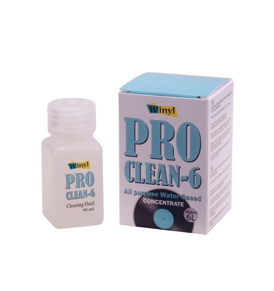 Pro Clean-6 hiszpańskiej marki Winyl to koncentrat bez zawartości alkoholu służący do przygotowania 6 litrów płynu czyszczącego do płyt gramofonowych. Odpowiedni do wszystkich rodzajów płyt gramofonowych, również szelakowych. Opakowanie zawiera 60 ml koncentratu.