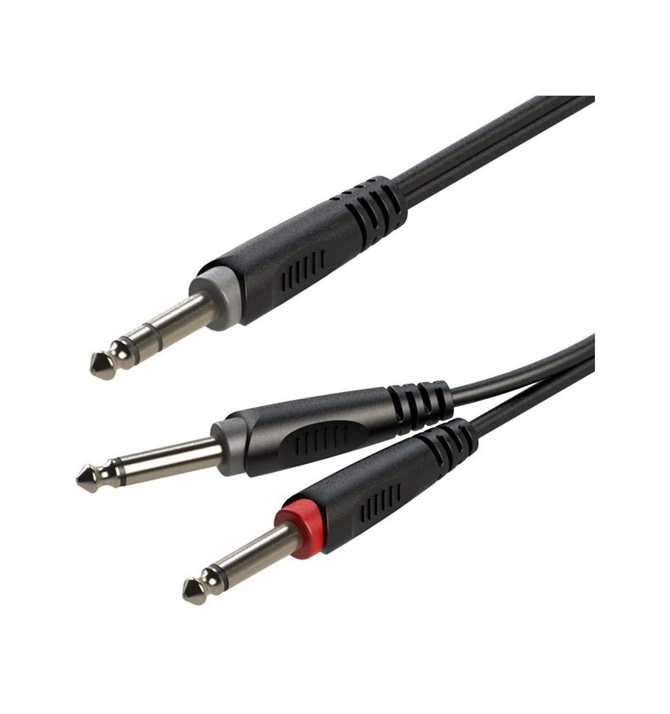 Roxtone RAYC100L1 - Kabel audio mini Jack 6,3 stereo 2x6,3 mm mono 1 m