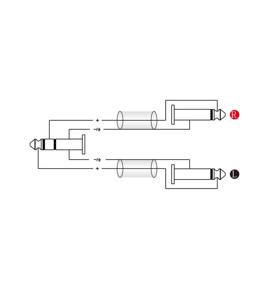 Wysokiej jakości kabel audio mini Jack o dużej elastyczności i odporności na zaginanie. Zaopatrzony został we wtyk 6,3 mm stereo oraz dwa wtyki mono 6,3 mm.