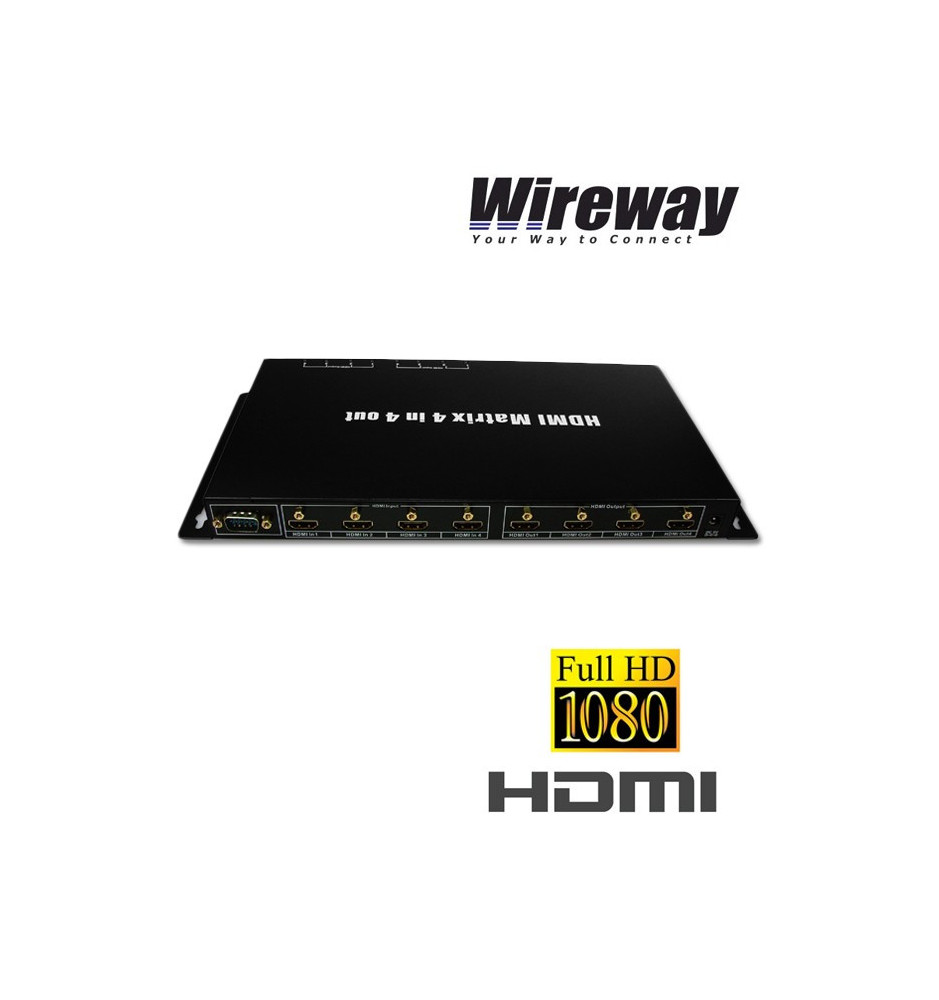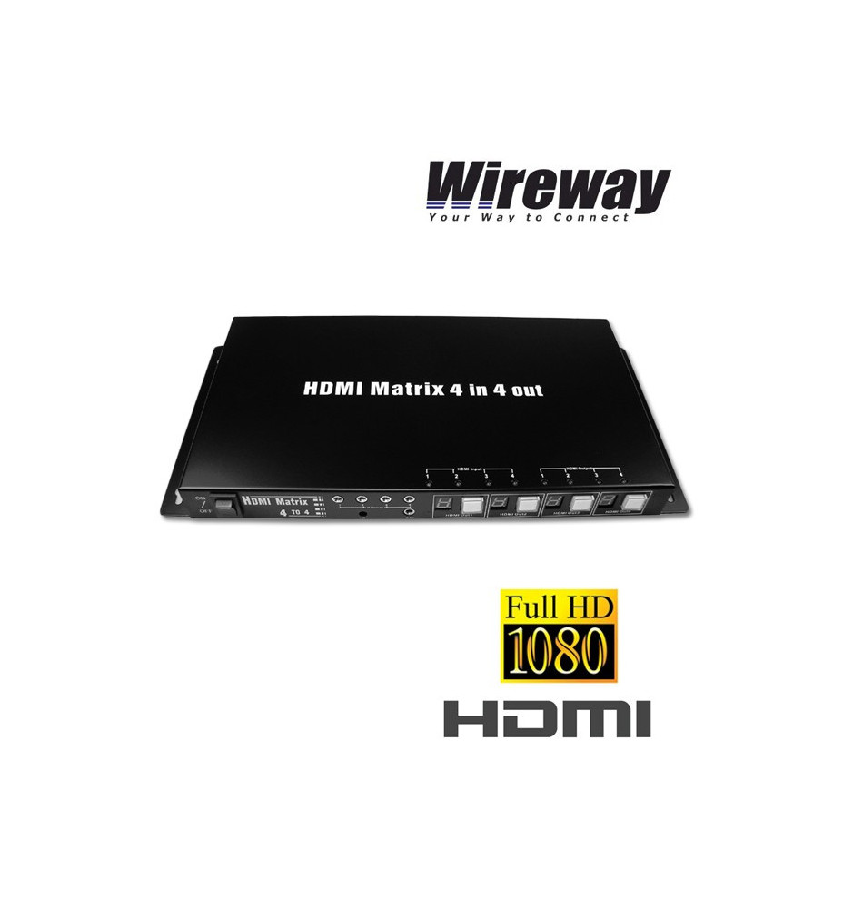 Wireway Matrix HDMI 4/4 to profesjonalny switch - przełącznik sygnału z 4 zupełnie różnych urządzeń na 4 wyświetlacze HDMI, obsługujący pełną zgodność z HDCP oraz najwyższą jakość obrazu full-HD.