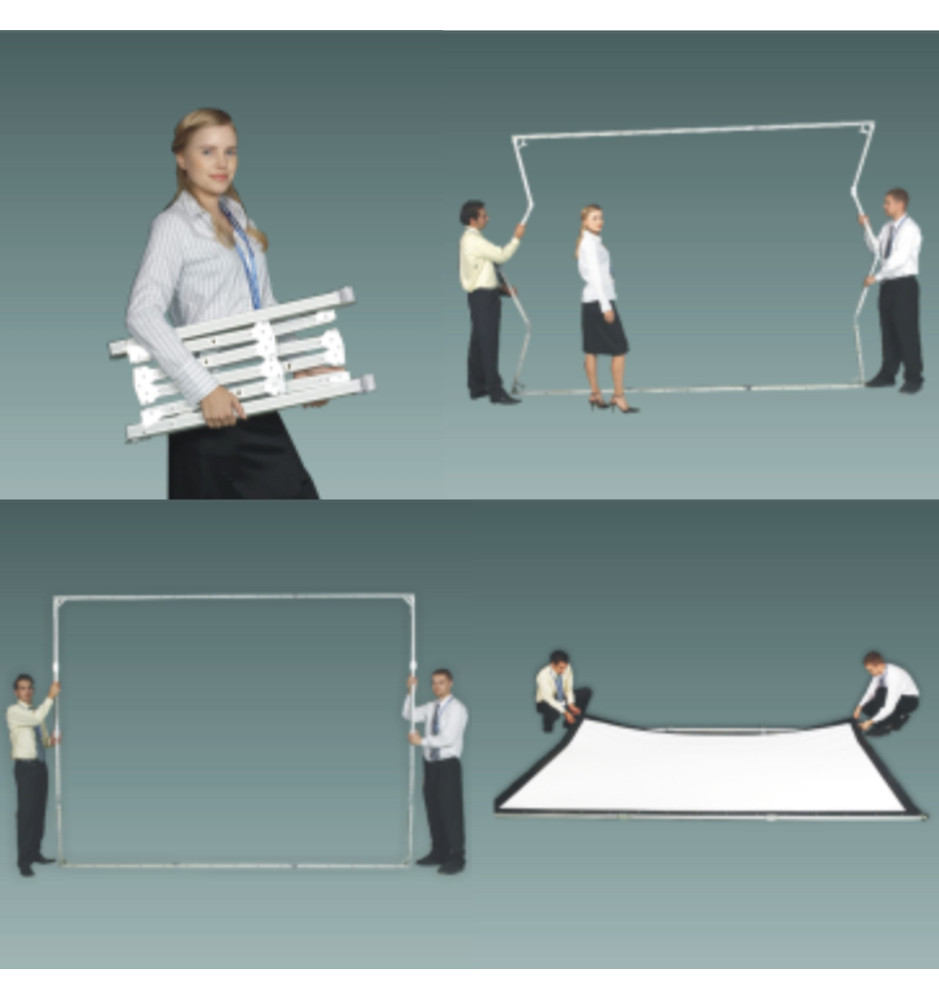 Składany przenośny ramowy ekran projekcyjny z linii profesjonalnej Suprema Orion, wyposażony w powierzchnię projekcyjną REAR przystosowaną do projekcji wstecznej.