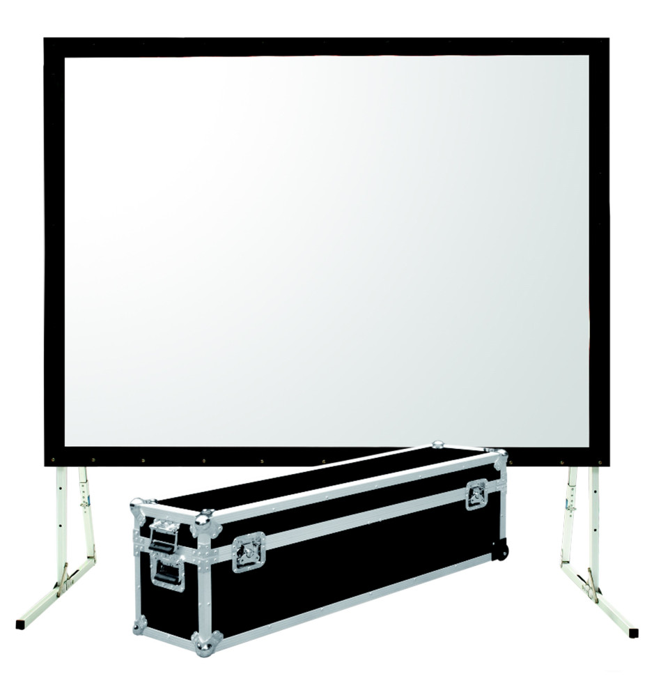 Składany przenośny ramowy ekran projekcyjny z linii profesjonalnej Suprema Orion, wyposażony w powierzchnię projekcyjną REAR przystosowaną do projekcji wstecznej.