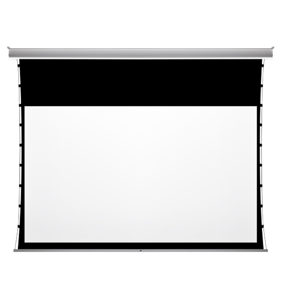 Ekran InCeiling Tensioned Black Top do dyskretnej instalacji w suficie podwieszanym jest wyposażony w napęd elektryczny umożliwiający jego zwijanie i rozwijanie. Wał nawojowy posiada wmontowany cichy napęd rurowy. Czarny górny pas pozwala na obniżenie części wizyjnej ekranu do 30cm. System Tensioning poprawia napięcie boczne powierzchni ekranu. Do ekranu producent dołącza natynkowy przełącznik ścienny francuskiej marki Somfy.