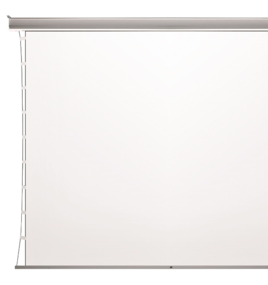 Ekran projekcyjny InCeiling Tensioned Edge Free, zaprojektowany do dyskretnej instalacji w suficie podwieszanym, wyposażono w napęd elektryczny umożliwiający jego zwijanie i rozwijanie. Wał nawojowy posiada wmontowany cichy napęd rurowy. Do ekranu producent dołącza natynkowy przełącznik ścienny francuskiej marki Somfy.