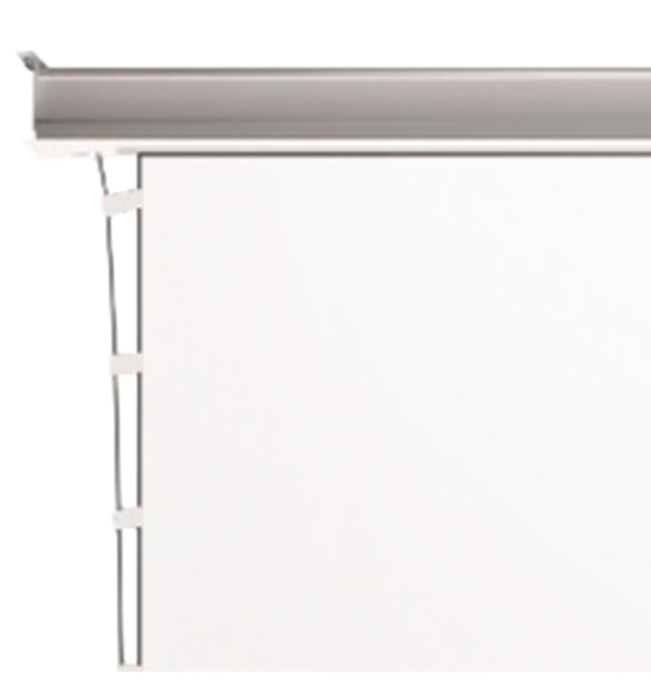 Ekran projekcyjny InCeiling Tensioned Edge Free, zaprojektowany do dyskretnej instalacji w suficie podwieszanym, wyposażono w napęd elektryczny umożliwiający jego zwijanie i rozwijanie. Wał nawojowy posiada wmontowany cichy napęd rurowy. Do ekranu producent dołącza natynkowy przełącznik ścienny francuskiej marki Somfy.