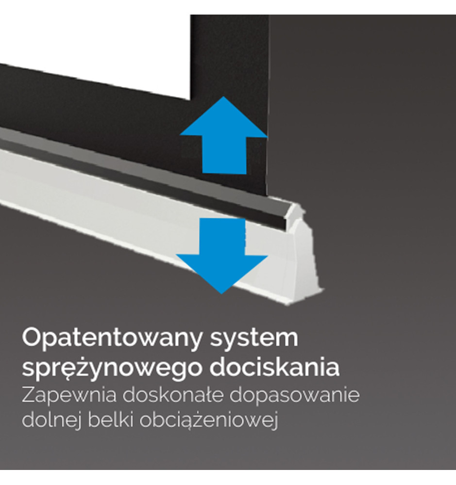 Wytrzymały materiał gwarantuje najwyższą jakość reprodukcji wyświetlanego obrazu, a jego powierzchnia może być czyszczona za pomocą delikatnych detergentów. System napinaczy bocznych sprawia, że powierzchnia ekranu pozostaje idealnie gładka i sztywna. Czarne ramki dookoła powierzchni projekcyjnej podkreślają kontrast i ułatwiają kalibrację. Górny pas rozbiegowy pozwala na idealne dopasowanie położenia powierzchni projekcyjnej.