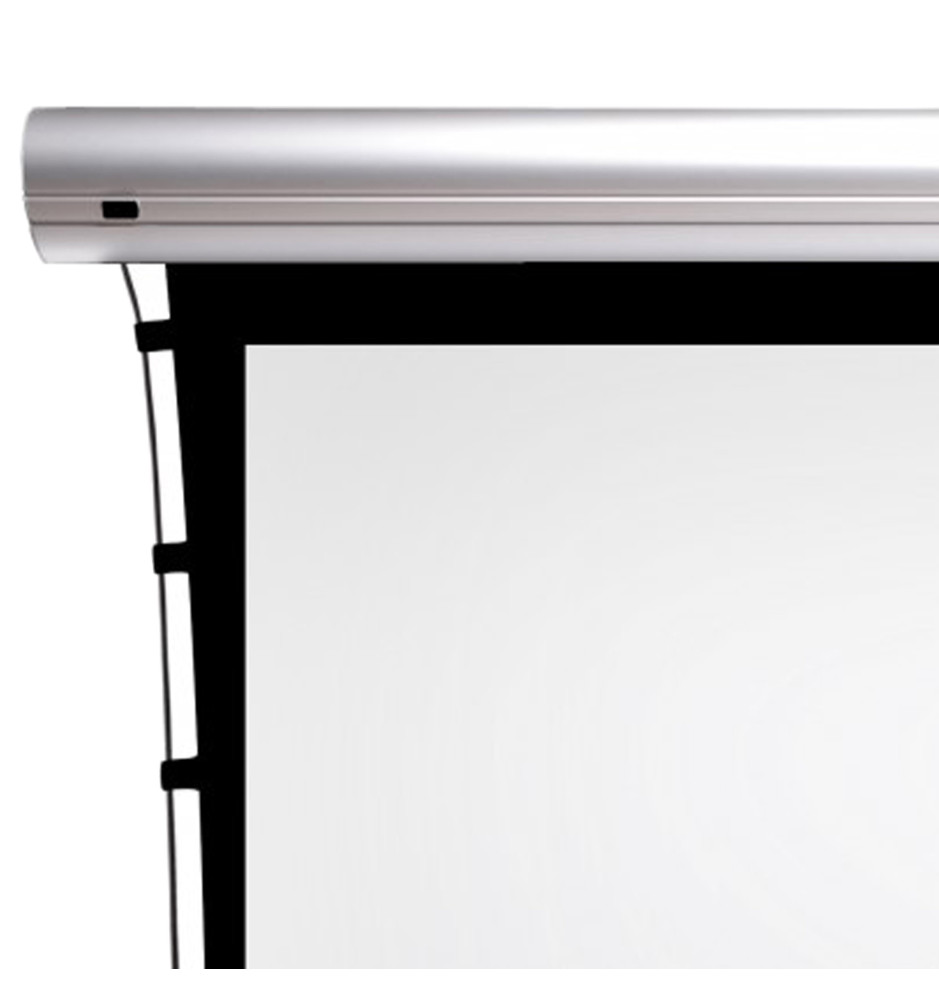 Ekran Blue Label Tensioned jest fabrycznie wyposażony w napęd elektryczny umożliwiający jego zwijanie i rozwijanie. Wał nawojowy posiada wmontowany cichy napęd rurowy. System Tensioning poprawia napięcie boczne powierzchni ekranu. Obudowa ekranu została wykonana z lekkiego anodowanego aluminium, standardowo wykończonego w kolorze srebrnym. Do ekranu producent dołącza natynkowy przełącznik ścienny francuskiej marki Somfy.
