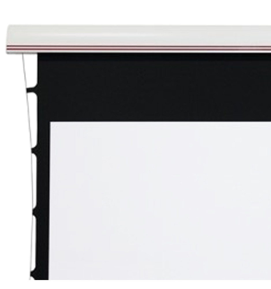 Ekran Red Label Tensioned Black Top jest wyposażony w napęd elektryczny umożliwiający jego zwijanie i rozwijanie. Wał nawojowy posiada wmontowany cichy napęd rurowy. Obudowa ekranu została wykonana z aluminium wykończonego w kolorze białym. System Tensioning poprawia napięcie boczne powierzchni ekranu. Czarny górny pas pozwala na obniżenie części wizyjnej ekranu. Do ekranu producent dołącza natynkowy przełącznik ścienny francuskiej marki Somfy.