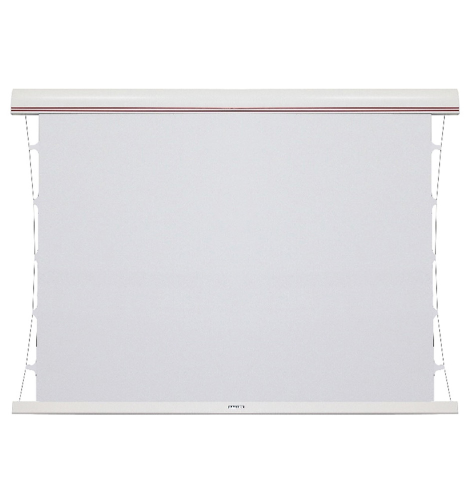 Ekran Red Label Tensioned Edge Free jest wyposażony w napęd elektryczny umożliwiający jego zwijanie i rozwijanie. Wał nawojowy posiada wmontowany cichy napęd rurowy. Obudowa ekranu została wykonana z aluminium wykończonego w kolorze białym. System Tensioning poprawia napięcie boczne powierzchni ekranu. Do ekranu producent dołącza natynkowy przełącznik ścienny francuskiej marki Somfy.