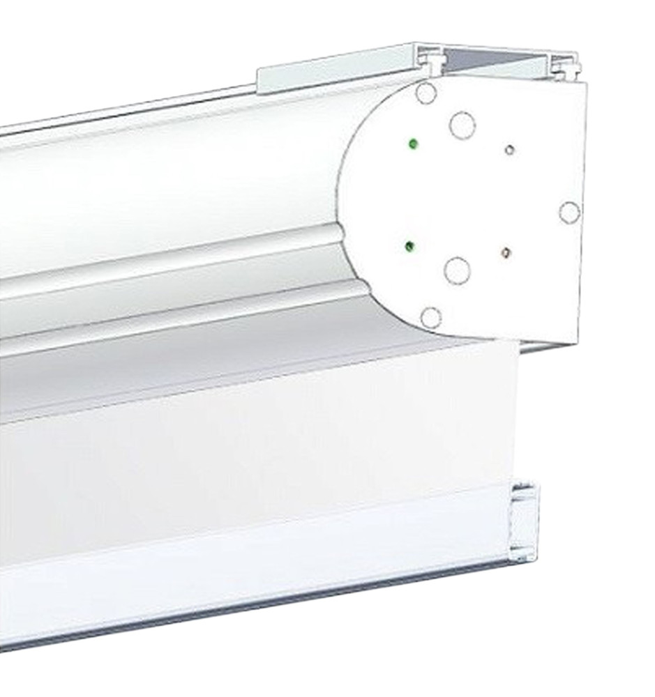 Elektrycznie rozwijany ekran projekcyjny polskiej firmy Kauber z serii White Label, idealny do biur, sal konferencyjnych, szkół, kina domowego oraz auli wykładowych. Ekran można zamontować na ścianie lub suficie, a jego instalacja jest wyjątkowo szybka i intuicyjna. Cechuje się lekką, elegancką obudową wykonaną z aluminium w kolorze białym oraz zastosowaniem powierzchni projekcyjnej Matt White Plus.