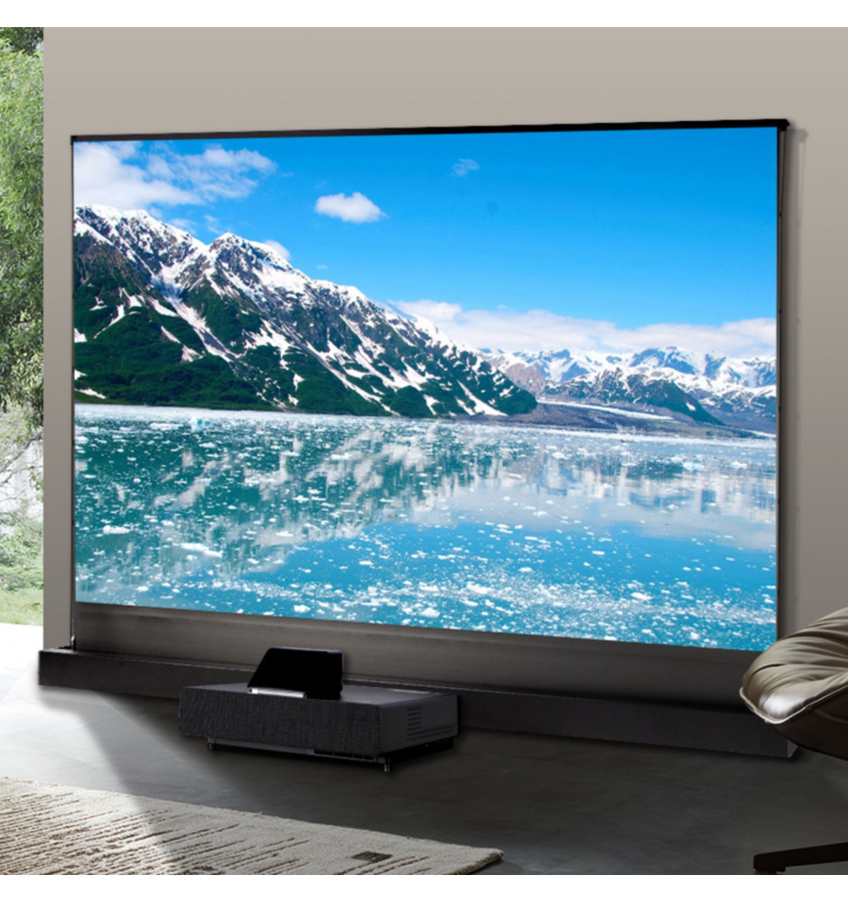 W ekranie zastosowano szarą matową powierzchnię projekcyjną ALR (Ambient Light Rejection), wykonaną z tworzywa PET. Posiada ona technologię odbijania niepożądanego światła i jest dedykowana dla projektorów ultrakrótkoogniskowych. Materiał przeznaczony do przedniej projekcji, kąt widzenia 140 stopni oraz współczynnik gain 0.4 zapewniają wyraźny, jasny obraz z reprodukcją kolorów 99%.