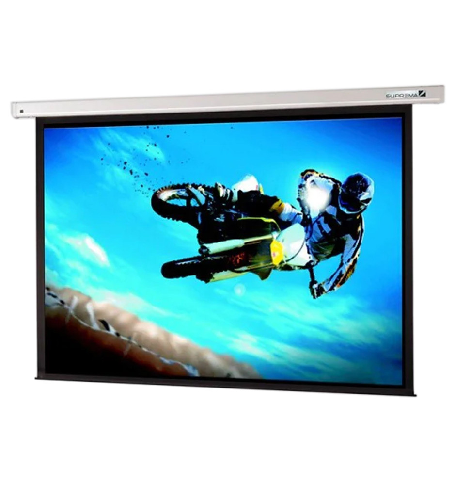 Elektrycznie rozwijany ekran projekcyjny Suprema Lupus z linii ekonomicznej o powierzchni projekcyjnej Matt White - dedykowany do zastosowań w edukacji, salach konferencyjno-szkoleniowych lub kinie domowym.