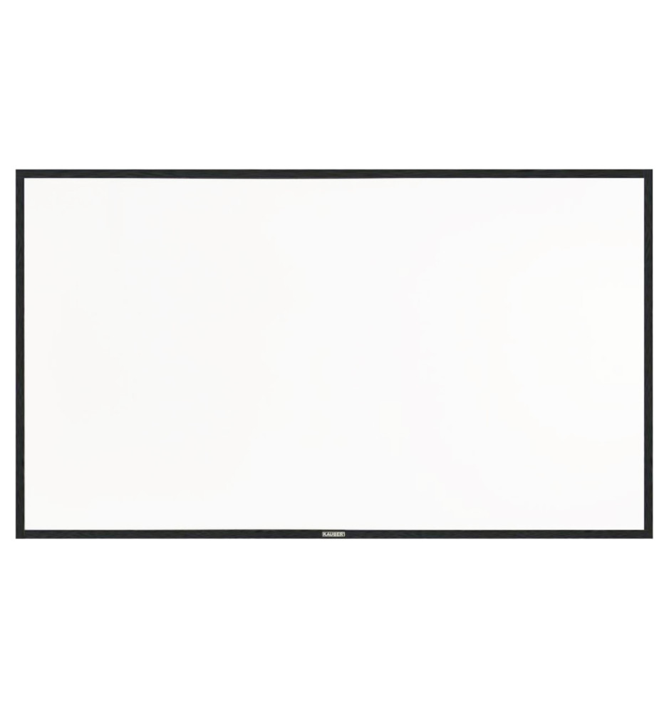 Przeznaczony do instalacji na ścianie, najwyższej klasy ekran projekcyjny polskiej firmy Kauber z serii Frame LED Active z idealnie napiętą powierzchnią projekcyjną, stylową aluminiową konstrukcją oraz aktywnym systemem LED.